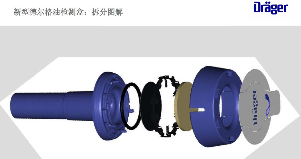 只能使用德爾格原裝配件連接至氣源壓力管線。5分鐘測量完成之后揭開油檢測盒表層的保護(hù)膜,應(yīng)確保徹底將油檢測盒推入油盒適配器8103557里面并檢查是否正確安裝。